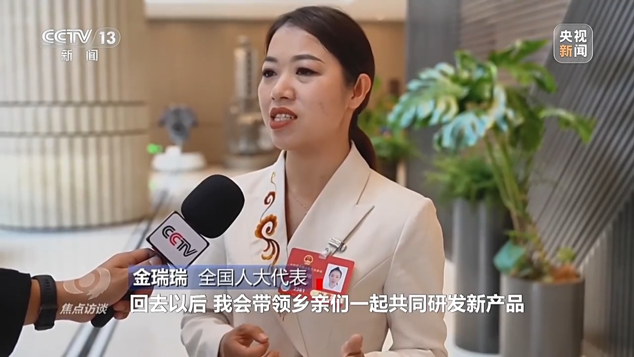 全國人大代表 金瑞瑞:方向和路徑都非常清晰,回去以后,我會(huì)帶領(lǐng)鄉(xiāng)親們一起共同研發(fā)新產(chǎn)品,把非遺手工的技藝傳承好和發(fā)揚(yáng)好,帶著鄉(xiāng)親們共同賺錢,把全國兩會(huì)擘畫的美好愿景轉(zhuǎn)化為實(shí)實(shí)在在的成績和收獲。