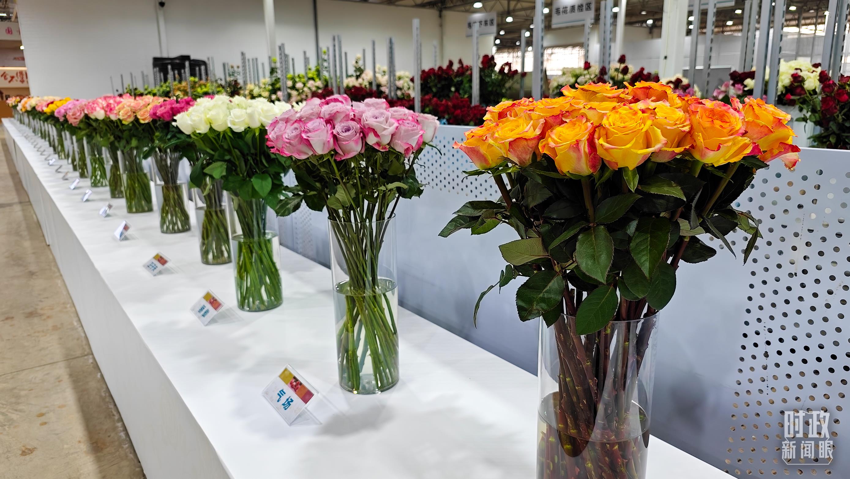 展廳里展示的鮮花品種。(總臺央視記者趙東辰拍攝)