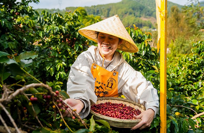 咖農(nóng)在采摘咖啡。思茅區(qū)融媒體中心供圖