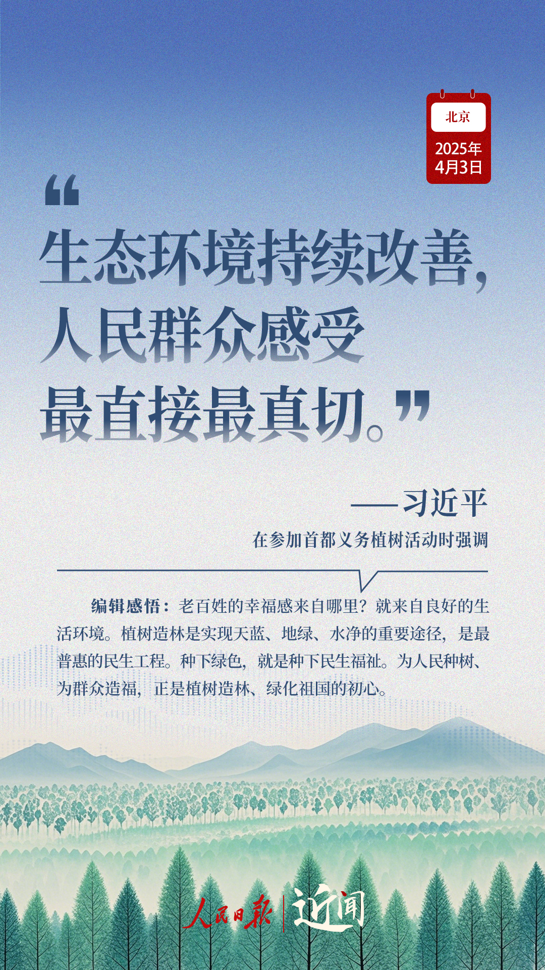“生態(tài)環(huán)境持續(xù)改善,人民群眾感受最直接最真切。”“義務(wù)植樹是全民行動,要一代接著一代干下去?!痹谥矘洮F(xiàn)場,從這些話語讀懂一份堅持、一種情懷。