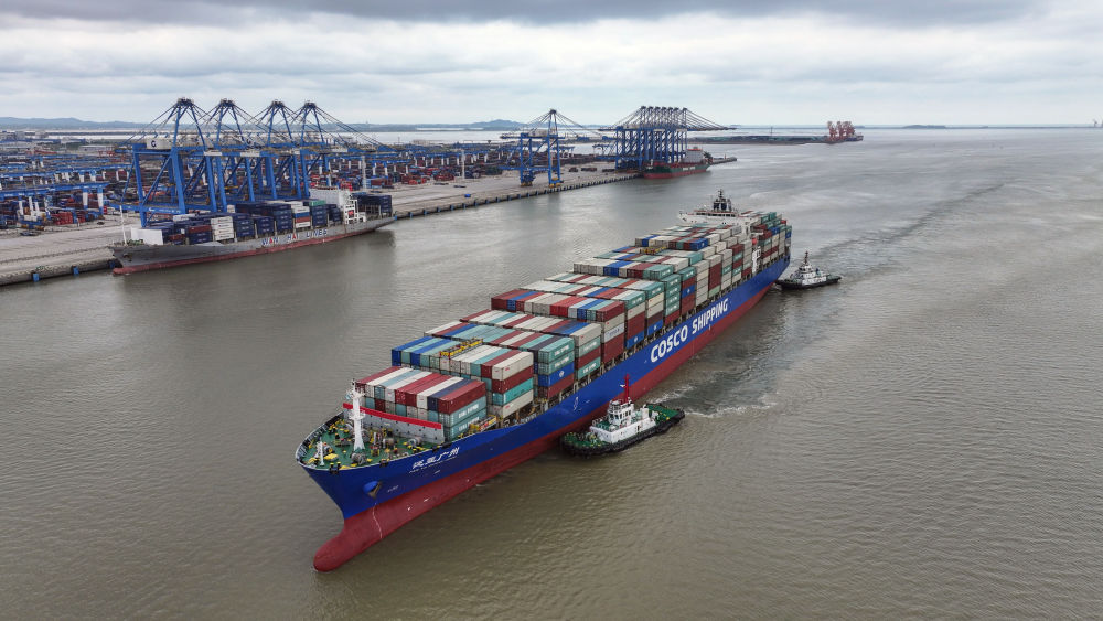 2024年5月19日,一艘海輪在廣西欽州港碼頭靠泊(無(wú)人機(jī)照片)。欽州港是北部灣港的組成部分,也是中國(guó)西南地區(qū)通往東盟的重要出??凇N鞑筷懞P峦ǖ览描F路、公路、水運(yùn)等多種運(yùn)輸方式,由重慶一路向南,經(jīng)廣西北部灣出海通達(dá)世界各地。截至2025年1月1日,北部灣港總航線達(dá)80條,其中外貿(mào)航線49條,基本實(shí)現(xiàn)國(guó)內(nèi)主要港口和東南亞、東北亞主要港口全覆蓋。
