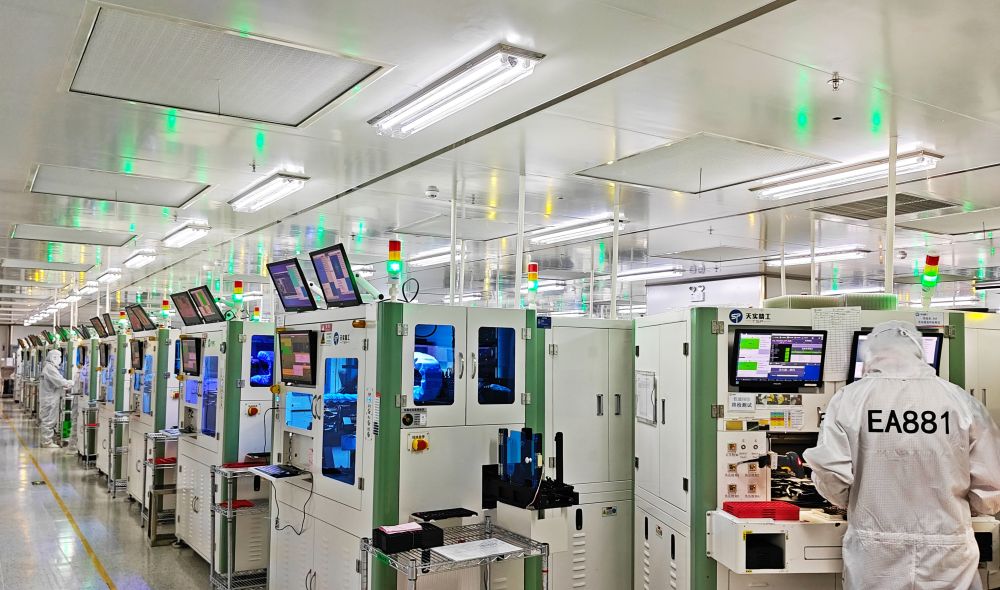 走進(jìn)重慶市天實(shí)精工科技有限公司無(wú)塵車(chē)間,智能機(jī)器人有條不紊地將芯片送上生產(chǎn)線,經(jīng)過(guò)自動(dòng)清洗、表面貼裝、芯片封裝、鏡頭裝聯(lián)等工序,一顆顆攝像頭模組就此誕生。