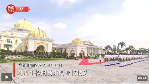 當?shù)貢r間4月16日上午,國家主席習(xí)近平檢閱馬來西亞儀仗隊。