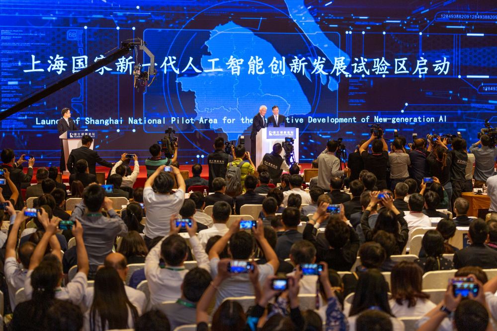 在上海舉行的2019浦江創(chuàng)新論壇全體大會上,科技部與上海市政府共同啟動上海國家新一代人工智能創(chuàng)新發(fā)展試驗區(qū)建設(2019年5月25日攝)。