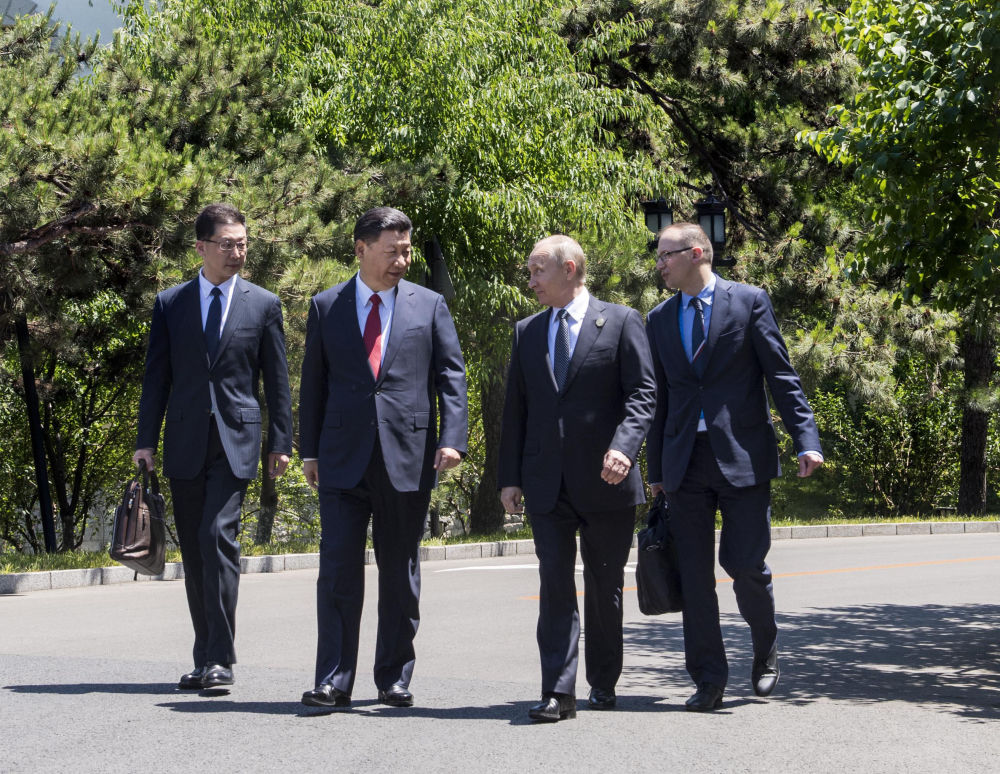 2017年5月14日,國(guó)家主席習(xí)近平在北京釣魚(yú)臺(tái)國(guó)賓館會(huì)見(jiàn)來(lái)華出席“一帶一路”國(guó)際合作高峰論壇的俄羅斯總統(tǒng)普京。會(huì)見(jiàn)后,習(xí)近平同普京在釣魚(yú)臺(tái)國(guó)賓館散步。