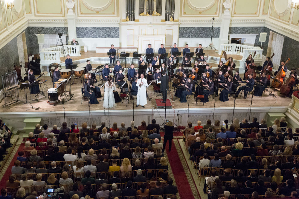 2019年11月13日,在俄羅斯圣彼得堡卡貝拉音樂(lè)廳,上海民族樂(lè)團(tuán)與安德烈耶夫國(guó)立模范民族樂(lè)團(tuán)的藝術(shù)家共同為觀眾獻(xiàn)上了一場(chǎng)名為《海上生民樂(lè)·和平頌》的精彩音樂(lè)會(huì),開(kāi)啟了上海民族樂(lè)團(tuán)2019俄羅斯巡演之旅。