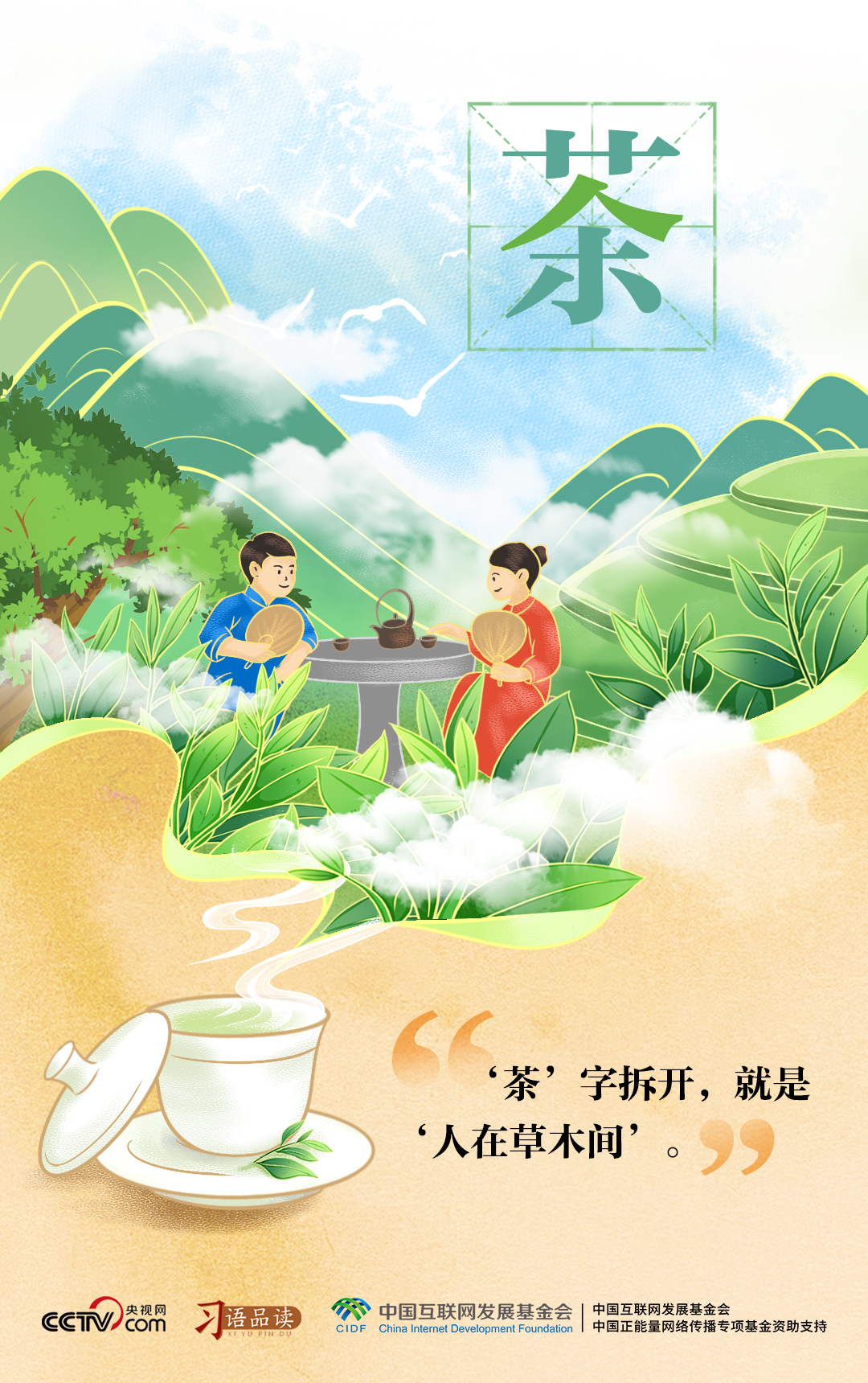 不同的交流場(chǎng)景,蘊(yùn)藏著相通的茶文化??倳浵葘ⅰ安琛弊植鸾鉃椤叭嗽诓菽鹃g”,形象描繪種茶、采茶、制茶和飲茶過(guò)程中人與自然和諧共生的畫面。之后,總書記又以“因茶致富”“因茶興業(yè)”闡釋茶的經(jīng)濟(jì)價(jià)值和賦能千行百業(yè)發(fā)展的多元價(jià)值。