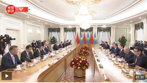 當地時間6月16日下午,哈薩克斯坦總統(tǒng)托卡耶夫同中國國家主席習近平在阿斯塔納總統(tǒng)府舉行會談。