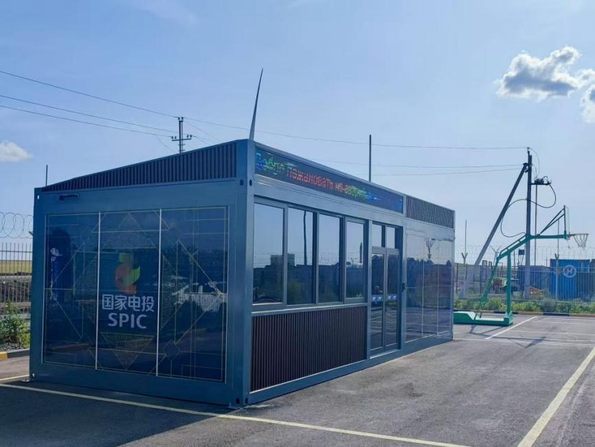 國家電投哈薩克斯坦能源投資公司阿克莫拉項(xiàng)目部負(fù)責(zé)人蔡慧勇介紹安全小屋和項(xiàng)目整體情況。本報(bào)記者 李洋 攝