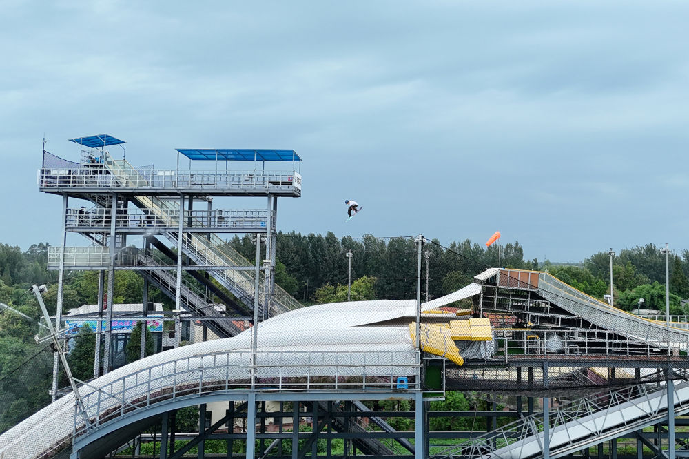 2024年8月9日,一名運動員在四川成都尖鋒旱雪四季滑雪場訓練。