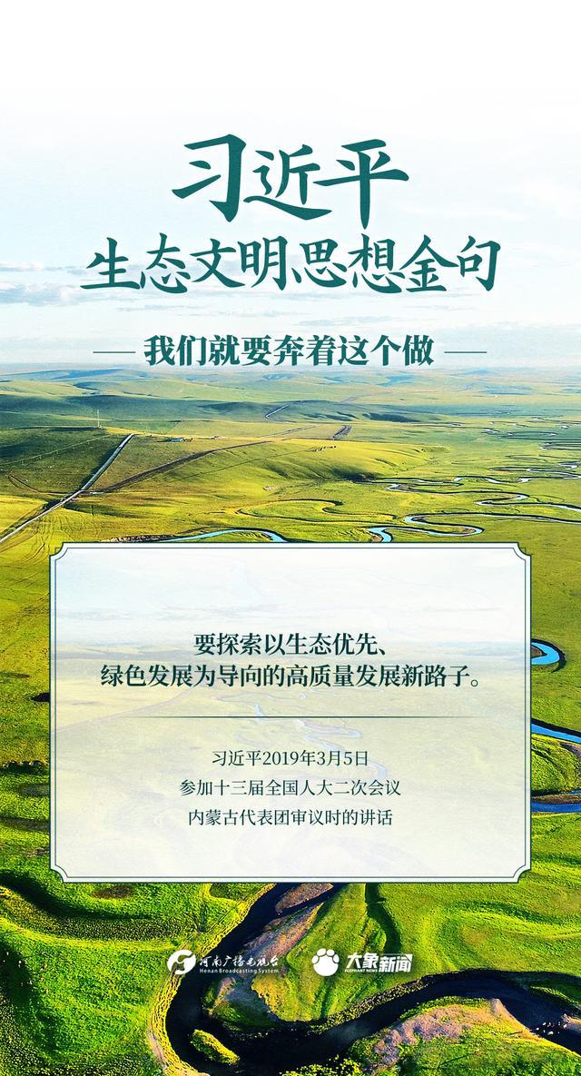 黨的十八大以來,習(xí)近平總書記把生態(tài)文明建設(shè)擺在治國理政突出位置,大力推動(dòng)生態(tài)文明理論創(chuàng)新、實(shí)踐創(chuàng)新、制度創(chuàng)新,創(chuàng)造性提出一系列新理念新思想新戰(zhàn)略,形成了習(xí)近平生態(tài)文明思想,對生態(tài)文明建設(shè)的時(shí)代之問、世界之問、人民之問作出的科學(xué)解答。大象新聞推出《習(xí)近平生態(tài)文明思想金句》系列策劃,今天推出《我們就要奔著這個(gè)做》。