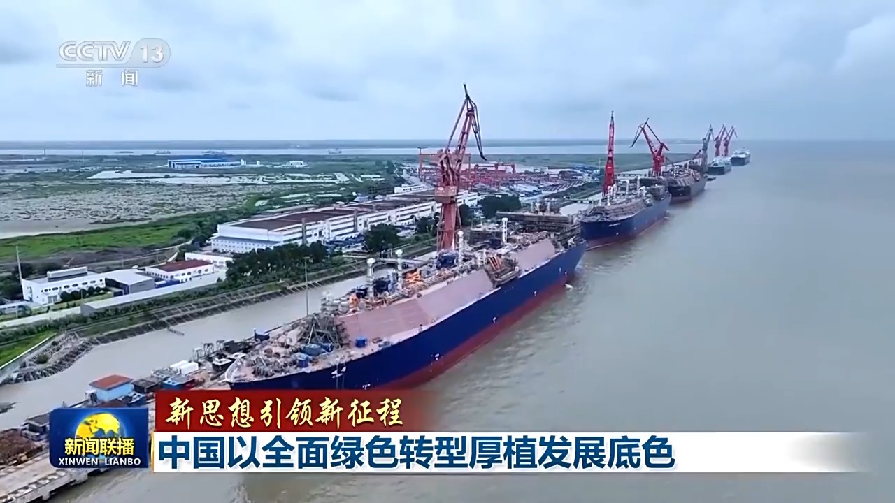上海長(zhǎng)興島,三大船廠生產(chǎn)線晝夜不息。今天,“綠色船舶中國(guó)造”已經(jīng)成為了船舶市場(chǎng)上的新趨勢(shì),中國(guó)新接綠色動(dòng)力船舶訂單占國(guó)際市場(chǎng)份額從2021年的31.5%增長(zhǎng)至2024年的78.5%。