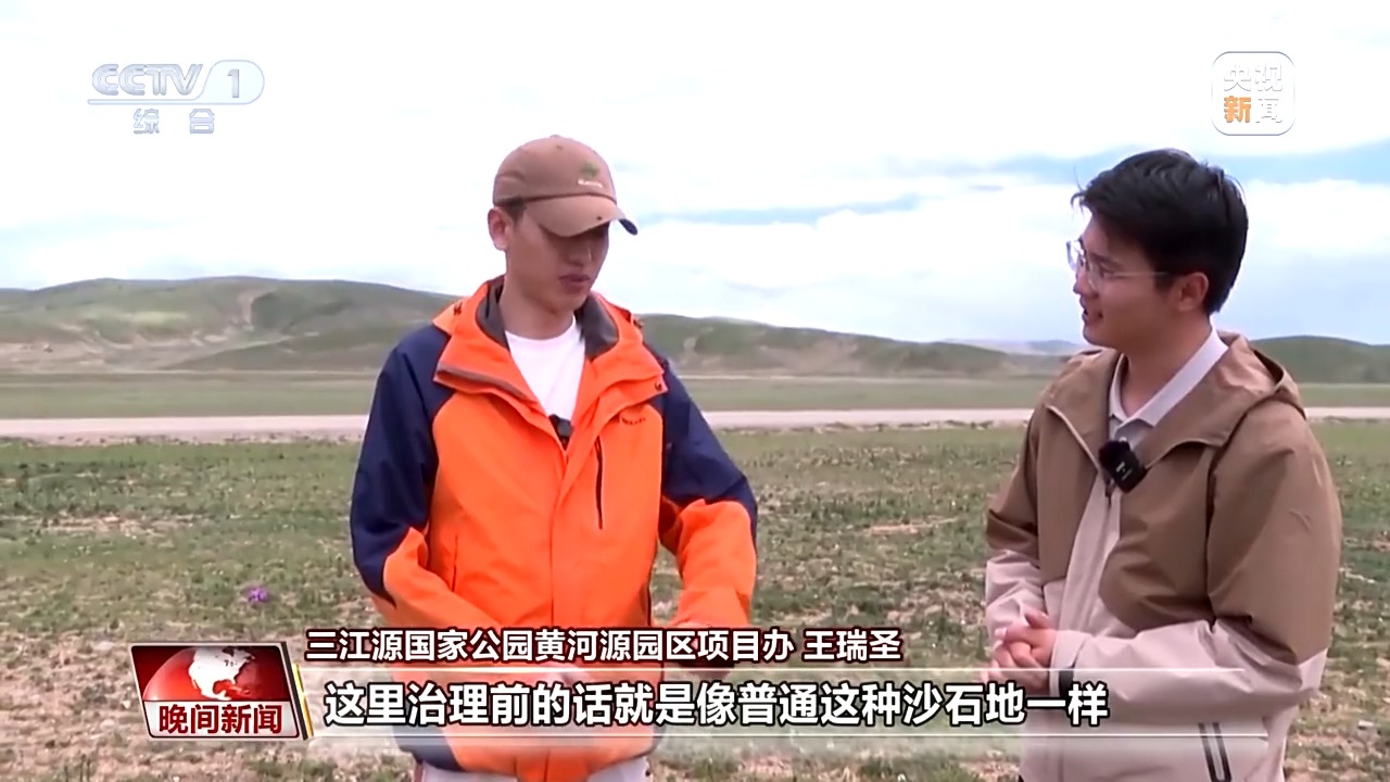 三江源國家公園黃河源園區(qū)項目干事 王瑞圣:這里治理前就像普通沙石地一樣,治理完的成效就是這樣子的,我們的草籽就在當時切割的凹槽里面生長,這些草籽好多根部已經進行分裂了,所以會顯得非常茂密。