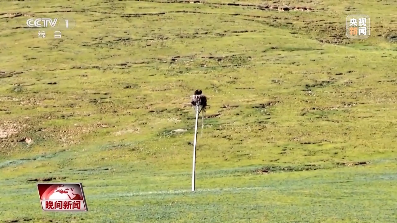 現(xiàn)在的三江源草原上,每隔一段距離就會有這樣一根孤零零的水泥桿。它有一個非常形象的名字,叫招鷹滅鼠架,老鷹在觀察臺上觀察目標,瞄準沖擊。這也是三江源國家公園保護草場,防治鼠害的一項有力措施。