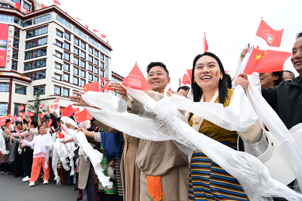 中共中央總書記、國家主席、中央軍委主席習(xí)近平率中央代表團(tuán)20日中午乘專機(jī)抵達(dá)拉薩,出席西藏自治區(qū)成立60周年慶?;顒?。習(xí)近平等在機(jī)場和拉薩市區(qū)受到西藏各族群眾的熱烈歡迎。