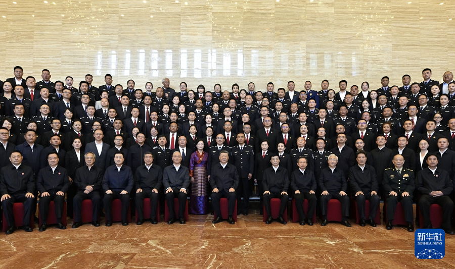 8月20日下午,中共中央總書記、國家主席、中央軍委主席習近平在拉薩親切接見西藏自治區(qū)政法干警代表,并同大家合影留念。新華社記者 殷博古 攝