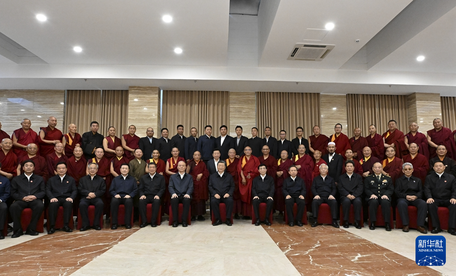 8月20日下午,中共中央總書記、國家主席、中央軍委主席習近平在拉薩親切接見西藏自治區(qū)宗教界愛國人士和寺管會干部代表,并同大家合影留念。新華社記者 李響 攝