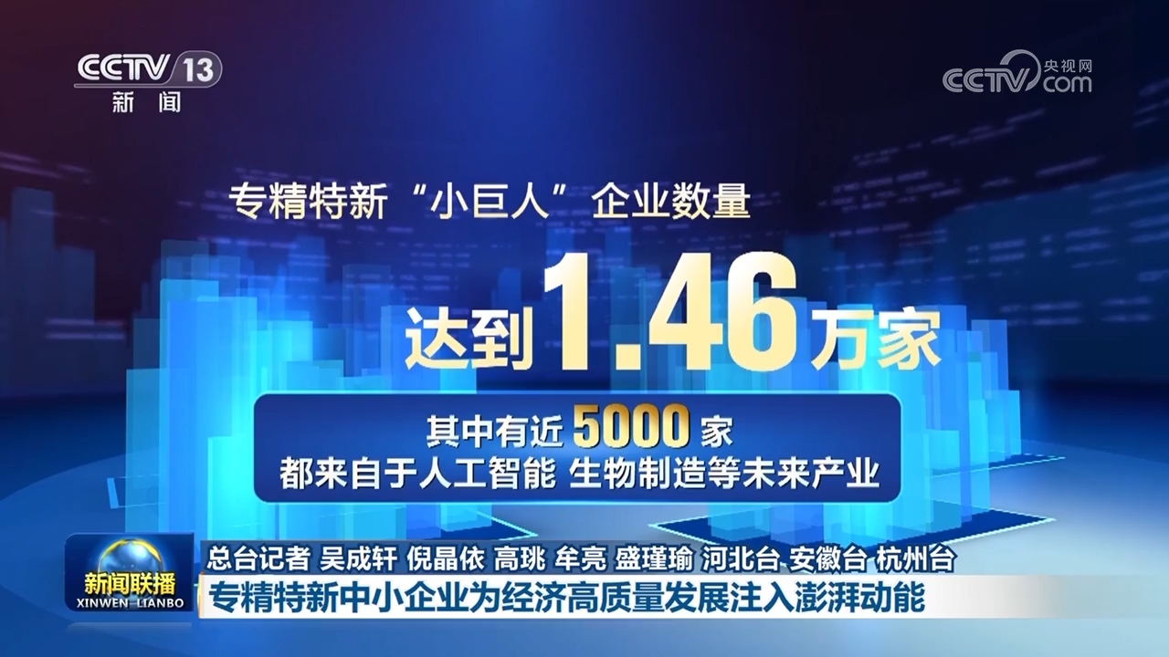 當(dāng)前,我國已累計培育專精特新中小企業(yè)超過14萬家,專精特新“小巨人”企業(yè)數(shù)量達(dá)到1.46萬家,其中有近5000家都來自于人工智能、生物制造等未來產(chǎn)業(yè)。1—7月,規(guī)模以上工業(yè)專精特新“小巨人”企業(yè)增加值同比增長8.7%,增速高于全部規(guī)模以上工業(yè)2.4個百分點。