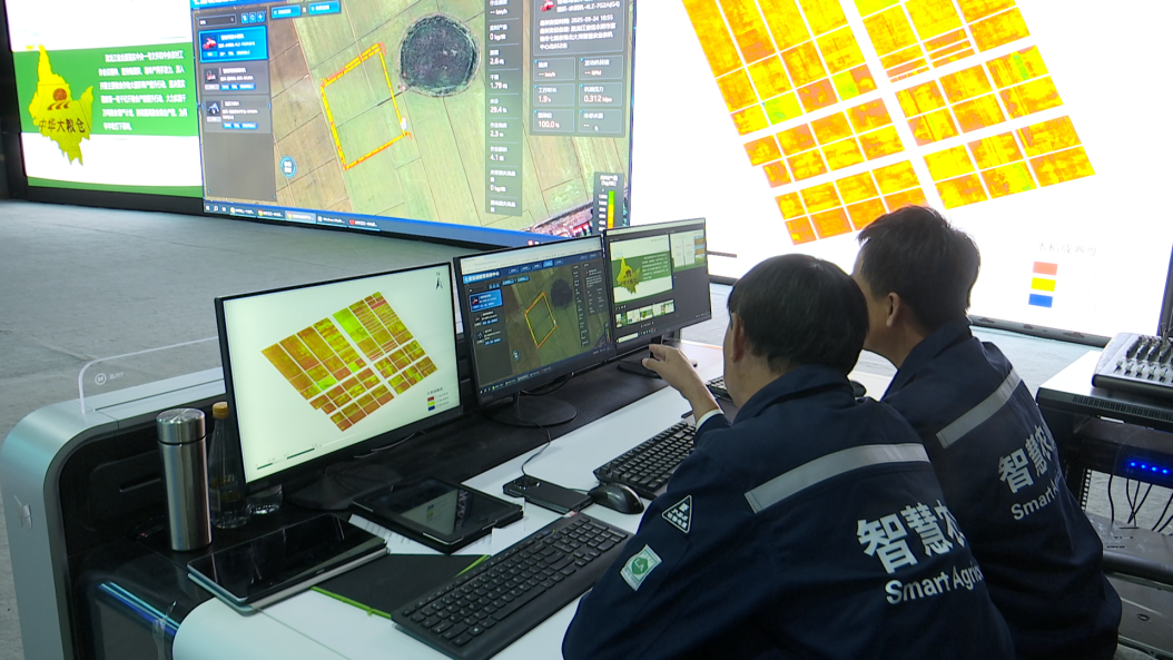 七星農(nóng)場“科技賦能農(nóng)業(yè)生產(chǎn)”的場景不僅在田間地頭,還在農(nóng)場智慧農(nóng)業(yè)指揮中心的大屏幕上上演。今年,該中心首次投入應(yīng)用多光譜成像水稻長勢圖,為秋收提供了精準(zhǔn)高效的數(shù)據(jù)支撐。“我們通過大數(shù)據(jù)、人工智能等技術(shù),分析水稻成熟度、未來氣象等,制定收獲排期,讓秋收更為有序。”該指揮中心高級主管王勇說。