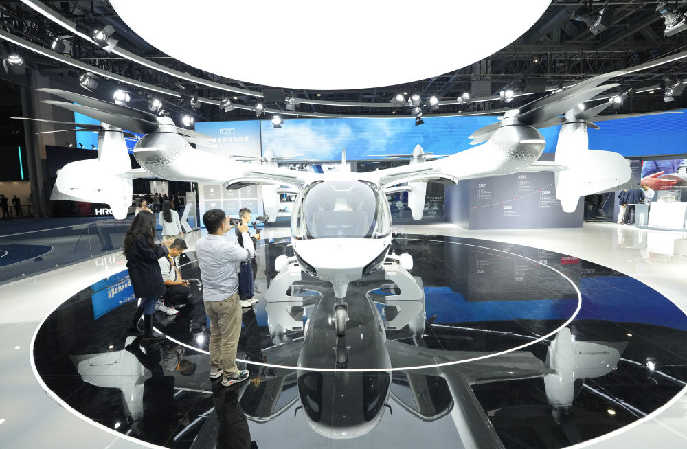 2025年11月5日在第八屆進(jìn)博會(huì)汽車及智慧出行展區(qū)拍攝的時(shí)的科技E20 eVTOL(電動(dòng)垂直起降飛行器)。在第八屆進(jìn)博會(huì)上,一批新型移動(dòng)出行產(chǎn)品與創(chuàng)新技術(shù)集中亮相。從智能駕駛到低空出行,從新能源解決方案到人性化設(shè)計(jì)……一幅多元化、立體化的未來出行圖景正徐徐展開。