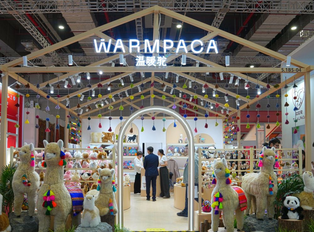 2025年11月5日在第八屆進(jìn)博會(huì)消費(fèi)品展區(qū)拍攝的“溫暖駝”展臺(tái)。從秘魯阿雷基帕的小店,到進(jìn)博會(huì)的展臺(tái),再到全球消費(fèi)者手中,進(jìn)博會(huì)為“溫暖駝”帶來了巨大的發(fā)展機(jī)遇。本屆進(jìn)博會(huì),“溫暖駝”展位面積已從2018年首屆進(jìn)博會(huì)的9平方米拓展至54平方米,并在上海、廈門等地開設(shè)6家門店。源自進(jìn)博會(huì)的“溫暖駝”訂單不僅助力秘魯200多個(gè)家庭脫貧,還倒逼一場“品質(zhì)革命”,讓羊駝玩偶制作對(duì)標(biāo)世界標(biāo)準(zhǔn)。