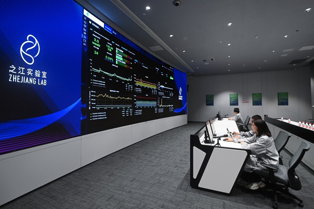之江實驗室計算與數(shù)據(jù)中心的工程師通過“之江云”系統(tǒng)監(jiān)測服務(wù)器集群的運行狀態(tài)。新華社記者 黃宗治 攝