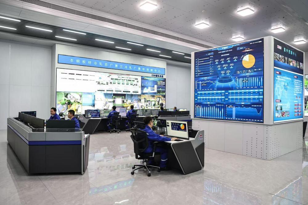 工作人員在鞍鋼集團所屬的本鋼板材冷軋總廠第三冷軋廠集控中心監(jiān)控設備運行情況。