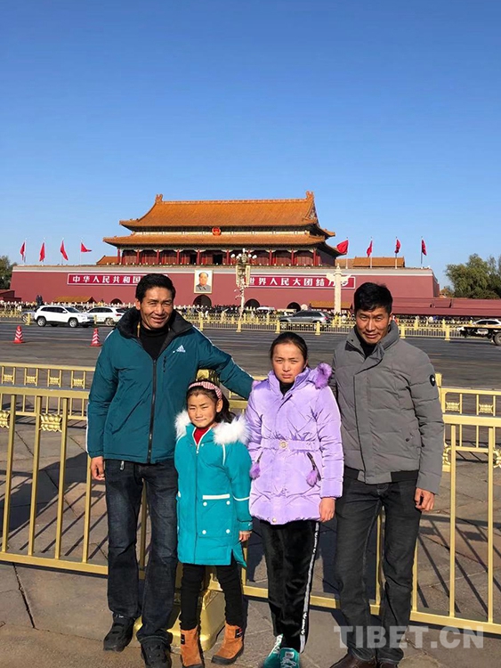 圖為離京前洛桑曲宗和次旦德吉與家人在天安門廣場留影 共鑄中國心組委會供圖