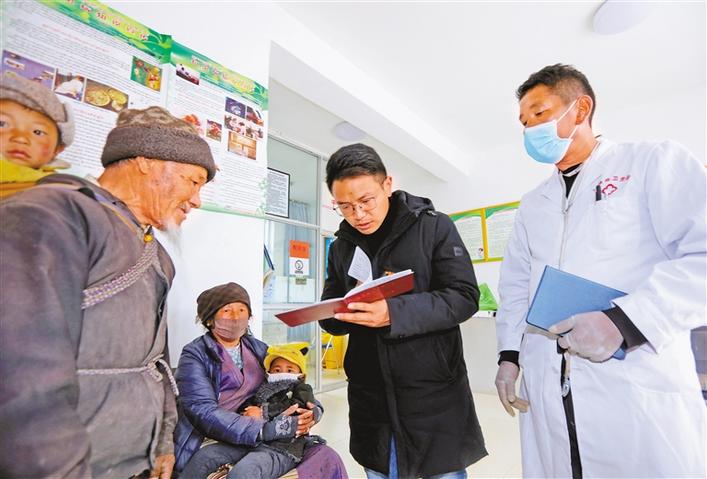 當選十三屆全國人大代表以來,西藏山南市瓊結(jié)縣拉玉鄉(xiāng)黨委副書記江村,積極為農(nóng)牧區(qū)醫(yī)療衛(wèi)生事業(yè)發(fā)展出謀劃策。在基層調(diào)研中,他最關(guān)心的是醫(yī)療衛(wèi)生室硬件設(shè)施和醫(yī)護人員結(jié)構(gòu)等情況。在今年全國兩會上,江村將圍繞“加大對西藏基層醫(yī)療衛(wèi)生方面的支持力度”等提出建議。圖為江村(右二)深入拉玉鄉(xiāng)堆巴村衛(wèi)生室調(diào)研。記者 洛桑 次旺 攝