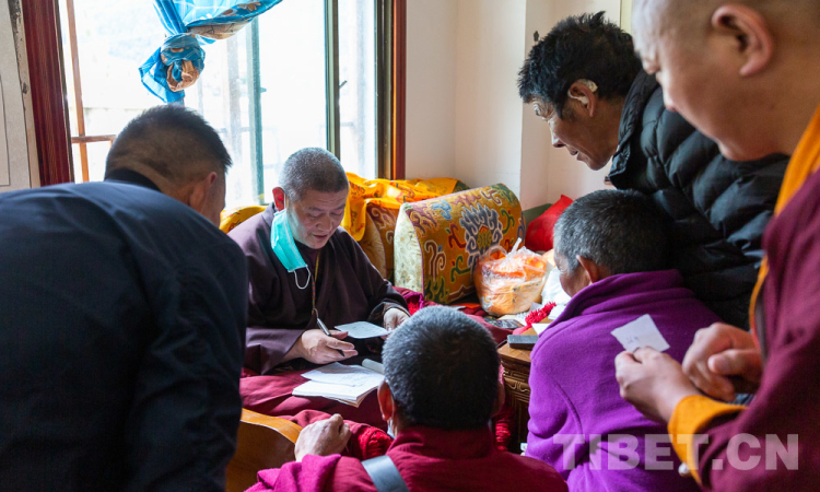 圖為扎西羅布正在為病人開具藥方 攝影:趙耀