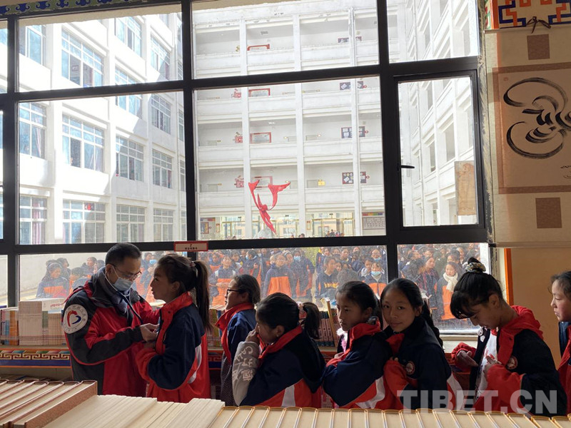 而此時圖書館外的走道上,北京天壇醫(yī)院心臟外科主任徐東、醫(yī)生馬浩,及解放軍總醫(yī)院心臟外科主任葉衛(wèi)華,正忙碌著給同校的其他一千多名同學做著檢查,他們的聽診器從未摘下,為了提高效率一直站立著挨個給排隊的孩子們篩查。31日當天,在德格縣共篩查1608人,最終確診14人,而四郎占姆就是其中確診的一個孩子。