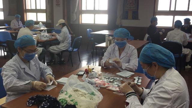 北京藏醫(yī)院工作人員正在包裝九味防瘟散。(受訪者供圖)
