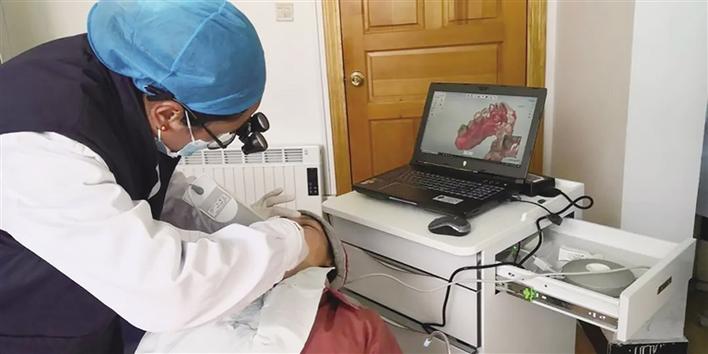 西藏自治區(qū)人民醫(yī)院口腔科醫(yī)生正在進行口內掃描操作。 圖由自治區(qū)人民醫(yī)院提供