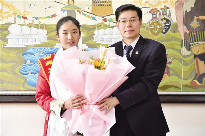 5月7日,自治區(qū)紅十字會(huì)、西藏大學(xué)、自治區(qū)血液中心聯(lián)合為拉增次仁舉辦了一場(chǎng)特別的歡送會(huì)。拉增次仁是西藏大學(xué)醫(yī)學(xué)院臨床全科專業(yè)的學(xué)生,是校團(tuán)委紅十字協(xié)會(huì)文藝部部長(zhǎng)。2018年11月,她在自治區(qū)血液中心的獻(xiàn)血車上捐獻(xiàn)了8毫升血樣,加入中國(guó)造血干細(xì)胞資料庫(kù)。今年2月25日,拉增次仁接到自治區(qū)紅十字會(huì)工作人員的電話,得知自己與內(nèi)地1位白血病患者配型成功了。