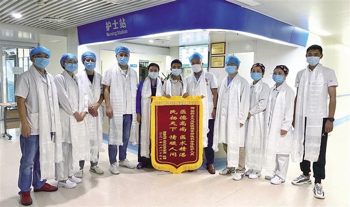 為了表達(dá)謝意,旦增的表哥專門(mén)從西藏購(gòu)買(mǎi)了20條哈達(dá),通過(guò)快遞寄到十堰市。出院那天,他帶著表弟為全科的醫(yī)護(hù)人員獻(xiàn)上潔白的哈達(dá)?!拔液芨兄x給我捐獻(xiàn)腎臟的人,也很感謝醫(yī)護(hù)人員們的關(guān)心照顧?!钡┰稣f(shuō)。