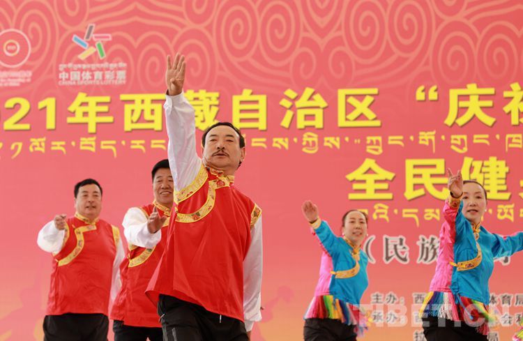 《幸福拉薩》、《民族健身牧民舞》、《康定情歌》……伴隨著一首首耳熟能詳?shù)母枨鱾€參賽隊伍開始表演。演出不僅展現(xiàn)了西藏各族群眾積極向上的精神面貌,也充分展示了西藏全民健身活動的豐碩成果。