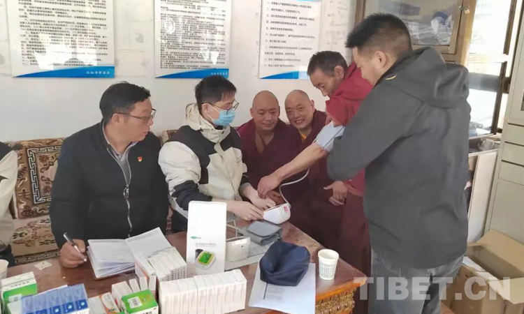現(xiàn)場(chǎng)志愿服務(wù)隊(duì)員們?yōu)樯娐犜\、量血壓、開處方、提建議,并幫助他們預(yù)約檢查,聯(lián)系醫(yī)保局詳細(xì)解答醫(yī)保報(bào)銷問題等。期間,隊(duì)員們還教會(huì)了每一位僧人使用電子血壓計(jì)監(jiān)測(cè)血壓,并向僧眾征集就診看病、醫(yī)療改革建議12條。義診結(jié)束時(shí),僧眾向志愿服務(wù)隊(duì)員們獻(xiàn)上哈達(dá)以示感謝。
