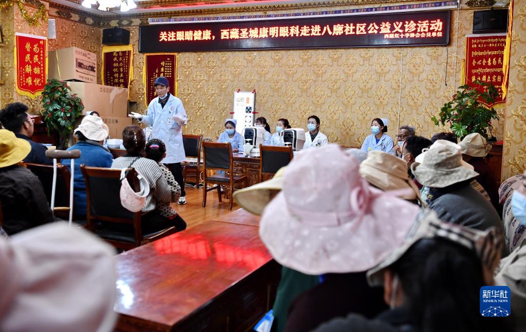 5月9日,醫(yī)務(wù)人員為八廓社區(qū)的居民開展眼科基礎(chǔ)知識講座。新華社記者 張汝鋒 攝