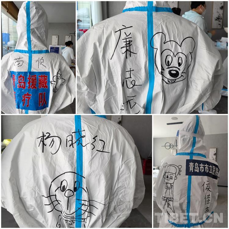 中國西藏網(wǎng)訊 青島援藏醫(yī)療隊自8月17日進藏以來, 隊員們無論工作多累多難、高原反應有多難受,都沒有一句怨言,依然堅持在西藏自治區(qū)日喀則市戰(zhàn)“疫”一線。工作之余,來自青島市市立醫(yī)院本部ICU的鐘翔宇發(fā)揮出了她的“隱藏技能”——在醫(yī)療隊的“大白”身上畫上漫畫,用表情包背到身上的方式給隊友們加油鼓勁兒。身著漫畫“戰(zhàn)袍”的隊員們斗志昂揚,朝氣蓬勃,互相鼓勵幫助,完成了一天天的工作任務。而這些古靈精怪的漫畫,在戰(zhàn)“疫”一線也成了一道靚麗的風景線。(中國西藏網(wǎng) 記者/次旦拉姆 由桑珠孜區(qū)融媒體中心供稿)
