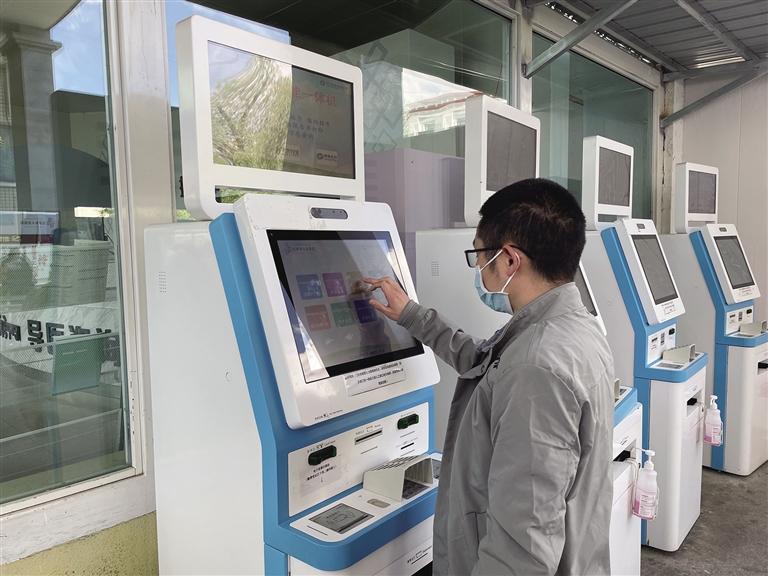 拉薩市民正在使用醫(yī)院內(nèi)的一體機(jī)掛號。記者 趙越 攝