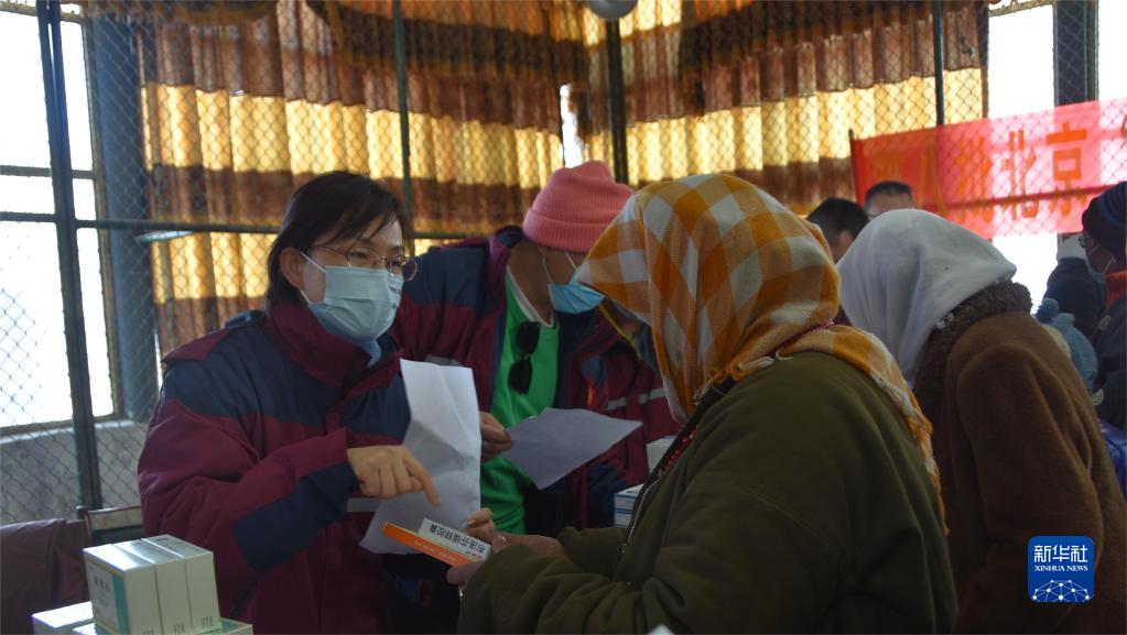 午后時分,天空仍然飄著小雪,來自北京援藏醫(yī)療隊的15名醫(yī)生剛下車,便馬不停蹄地開始工作。據援藏醫(yī)療隊醫(yī)務處處長趙萬全介紹,本次義診前,醫(yī)療隊已提前了解當地群眾的多發(fā)病類型,攜帶了充足的降血壓、常用抗生素等藥品。與此同時,他們還為納木湖鄉(xiāng)群眾開展“分級診療”,“把脈”群眾的健康狀況,對群眾所患病癥的進一步醫(yī)治給出相應建議。