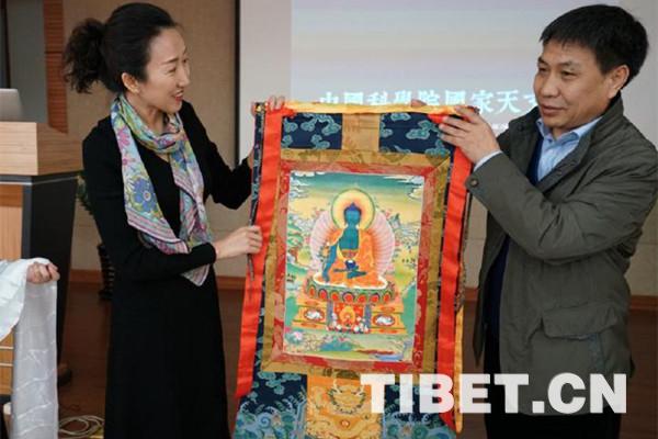 圖為北京藏醫(yī)院和中國(guó)科學(xué)院國(guó)家天文臺(tái)雙方互贈(zèng)文化制品、圖書(shū)。攝影:李偉 魯星杞
