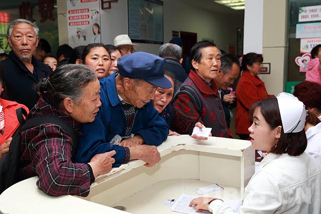 圖為當(dāng)?shù)厝罕娫阢氪h中醫(yī)醫(yī)院義診點排隊掛號。