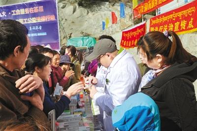 近日,西藏自治區(qū)總工會在拉林鐵路達(dá)嘎拉隧道施工現(xiàn)場,開展了以“學(xué)習(xí)貫徹十九大·工會服務(wù)在基層”為主題的服務(wù)職工系列活動?;顒蝇F(xiàn)場,西藏自治區(qū)司法廳法律援助中心律師以“法律講堂”的形式與職工互動;西藏自治區(qū)人民醫(yī)院、西藏自治區(qū)藏醫(yī)院醫(yī)生為職工義診并發(fā)放了藥品;遠(yuǎn)大農(nóng)民工藝術(shù)團(tuán)、朗縣民間藝術(shù)團(tuán)表演了文藝節(jié)目。