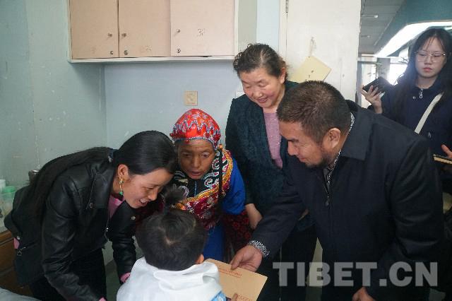 圖為甘南藏族自治州政協(xié)原副主席丁目迪給中日友好醫(yī)院的患兒送上慰問金。攝影:孫健