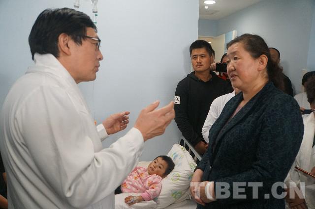 圖為各位領(lǐng)導(dǎo)在中日友好醫(yī)院看望來自甘南卓尼縣的患兒蘇奴刀旦。攝影:孫健