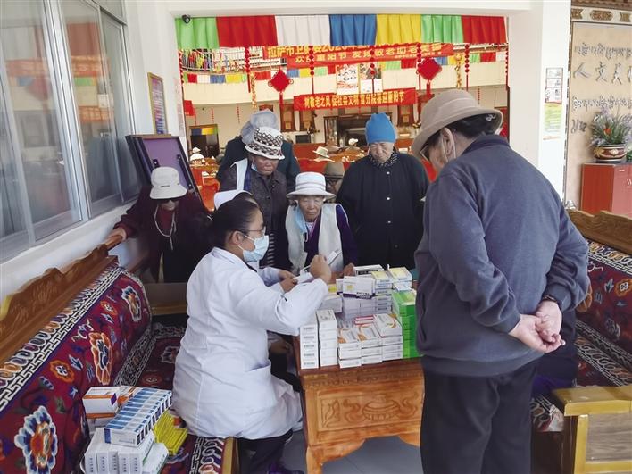 拉薩市衛(wèi)生健康委副主任張國紅說:“此次慰問活動不僅豐富了老人們的精神文化生活,也進一步弘揚了‘尊老、敬老、愛老、助老’的良好社會風(fēng)氣?!蔽乃嚮顒咏Y(jié)束后,拉薩市人民醫(yī)院的兩名西醫(yī)和城關(guān)區(qū)嘎瑪貢桑社區(qū)衛(wèi)生服務(wù)中心的兩名藏醫(yī)為老人們進行了義診服務(wù),根據(jù)老人們的實際需要免費發(fā)放了價值5000元的藥品。