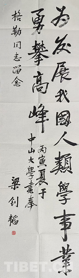 這次我給中大捐贈了珍藏已久的梁先生為我題寫的畢業(yè)贈言。他要我為發(fā)展我國人類學事業(yè)勇攀高峰,我知道以我的能力和年齡,今生不一定能攀登高峰,但我依然在努力,依然在奮斗。近二十多年來,我在一些大專院校兼任博士生導師,為培養(yǎng)中國馬克思主義藏學家和人類學家而辛勤耕耘,尤其是2011年從行政崗位退下來以后,我已經全身心地投入到培養(yǎng)中國藏學和人類學接班人的教學工作中,不辜負梁釗韜導師的贈言和中大領導以及人類學老師們期望,為中國藏學和人類學的發(fā)展發(fā)揮余熱,我樂此不疲。至少我要對得起榮獲的兩個“第一”的光環(huán)吧。(中國西藏網(wǎng) 文/格勒 圖片均為作者提供)