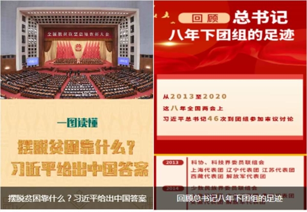 兩會期間,“云上會”記者與中心編輯、后方記者密切配合,推出了一批有分量、有新意的優(yōu)秀作品。重點(diǎn)策劃習(xí)近平總書記下團(tuán)組系列融媒體報道,包括系列長圖《一圖回顧|8年兩會“下團(tuán)組”》、系列快閃短視頻《兩會金句|八年“下團(tuán)組”習(xí)近平總書記都說過啥》、系列海報《向總書記匯報》等作品,網(wǎng)友點(diǎn)贊:“句句鏗鏘,為習(xí)近平總書記點(diǎn)贊!”“相信黨一定可以帶領(lǐng)我們走向輝煌!”
