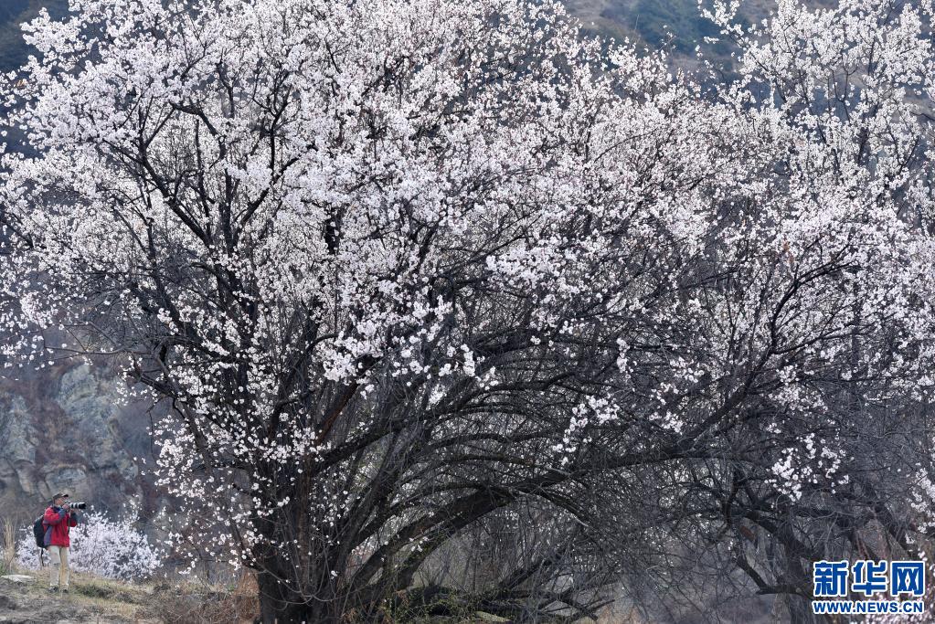 3月27日,游客在林芝市嘎拉村觀賞盛開的桃花。新華社記者 孫瑞博 攝